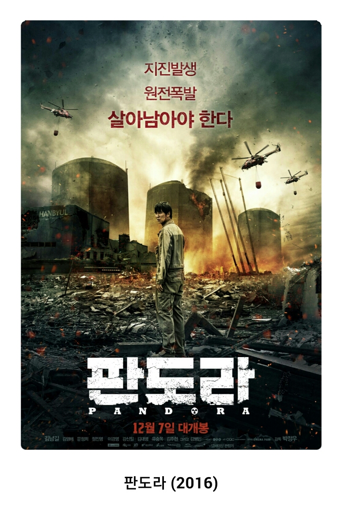 영화 제목처럼 판도라의 상자가 열렸을 때 일어나는 일을 영화한 것인데 한국에서 있음 직한 일을 주제로 하였는데 방사능의 위험함과 일본에서 후쿠시마 원전 사고가 일어났을 때 대처했던 방식도 알아보면서 올바른 대처법이 무엇인지 알아본 기억이 있다.